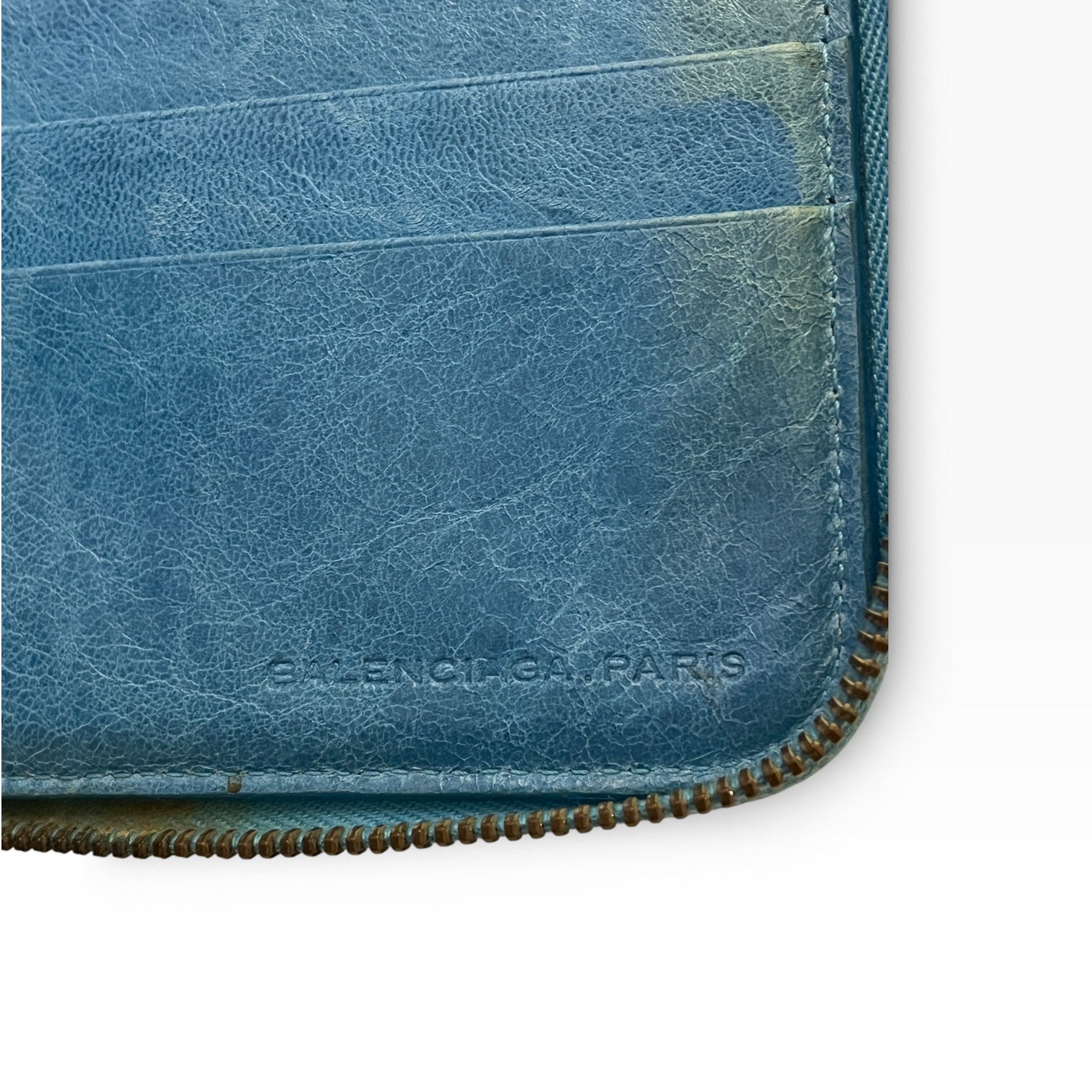 Balenciaga large zip around wallet with signature ‘city’ rivets and zipper pocket detail. Plenty of card space, as well as an internal zip pocket.