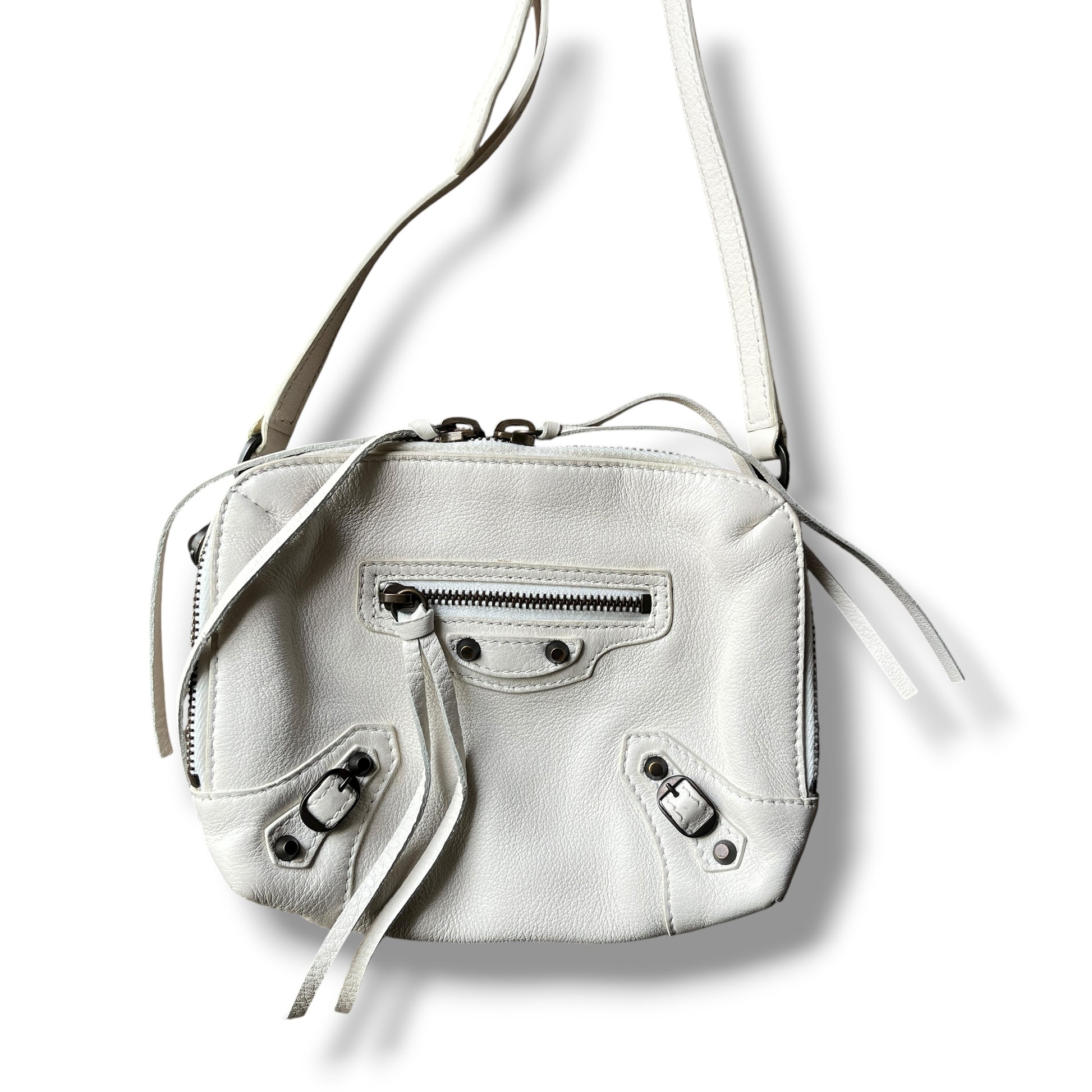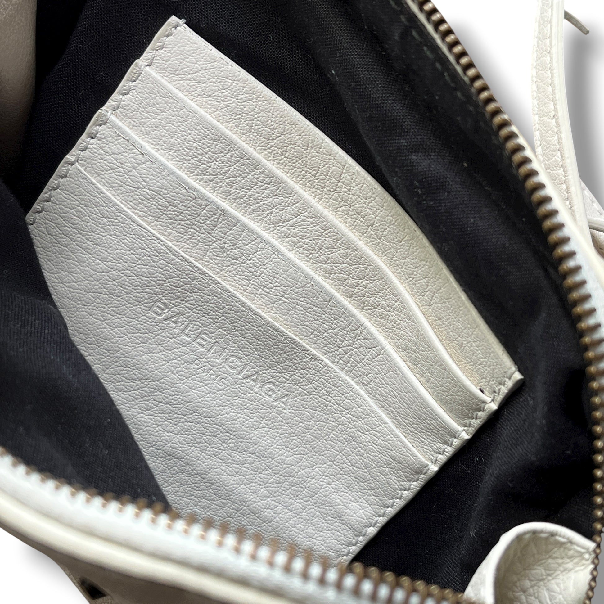 Rare model, white soft leather. Brass coloured rivets/hardware. Internal card slots. May not fit some iPhone models.